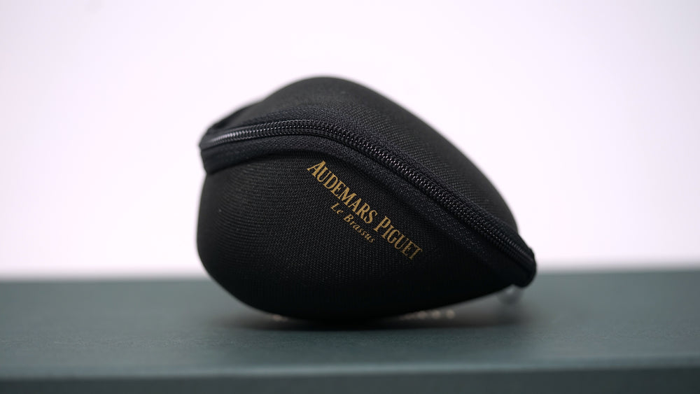 This Audemars Piguet Royal Oak luxury watch travel case is an authentic AP-branded pouch crafted to securely store and transport your luxury watch. Featuring a durable black textured exterior, a secure zip closure, and the iconic gold Audemars Piguet – Le Brassus logo, this case delivers understated elegance and dependable protection.